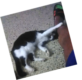 En Oct 2010 me reinventaron la rodi- lla derecha… Adquirí… La Biónica. Al volver a casa 12 días después (Hos- pital y Millenium), me encuentro con …Nina Olgri Romero Serrano…. una gatita de unas 2 semanas… lamiendo leche de un platito. ? ? ? El Dr no me mencionó… este… ‘side effect’. ¿Gemela… con La Biónica?