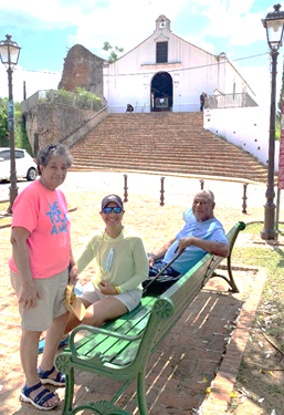 una mesa distanciada… esperándonos. Es, La mesa de Ednita. Algo para empezar? Queso frito… y 3 Don Q Coco, con cranberry y piña (lo había probado el día anterior, a sugerencia de Olguita). Ahh! Y a Da Emma, también le gustó. Ahhh!